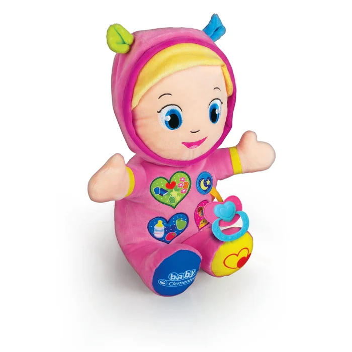È una tenerissima bambola educativa parlante in stoffa con la quale giocare e imparare in un mondo di dolcezza!