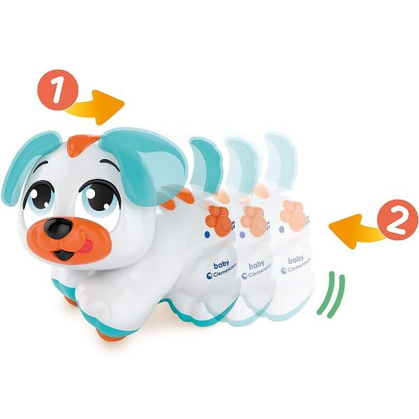 Il cagnolino si muove grazie a un meccanismo a retrocarica. I due pulsanti sul capo e sul muso riconoscono le carezze del bambino: quando vengono sfiorati il cucciolo parla, canta, mugola e dà bacini.
