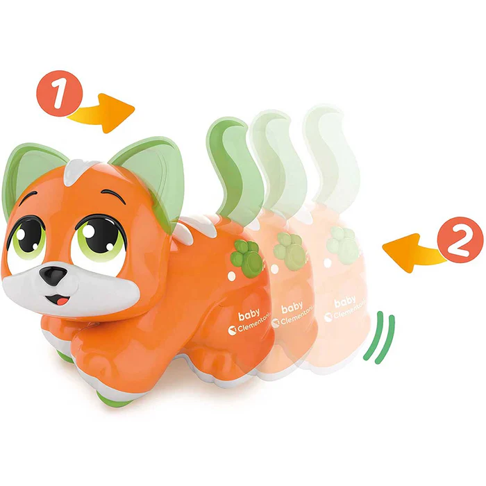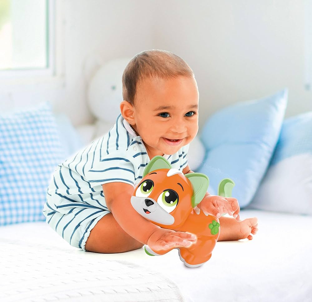 Il gattino si muove grazie a un meccanismo a retrocarica. I due pulsanti sul capo e sul muso riconoscono le carezze del bambino: quando vengono sfiorati il cucciolo parla, canta, mugola e dà bacini.