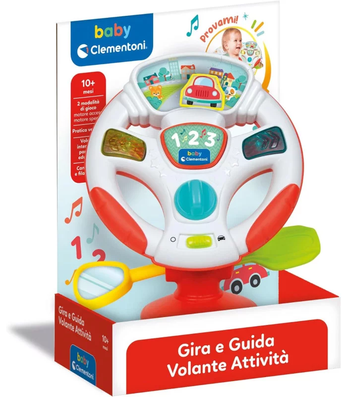 Lo specchietto e il cambio si muovono e le attività meccaniche aiutano il bambino a sviluppare la manualità. Il volante ha una pratica ventosa per un fissaggio facile.Gioco elettronico interattivo studiato per lo sviluppo del bambino nei primissimi anni di vita, consigliato a partire dai 6 mesi.