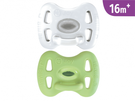 2 Succhietti Morbidi Joy 100% Silicone medicale 16 mesi+ Trasparente e Pistacchio