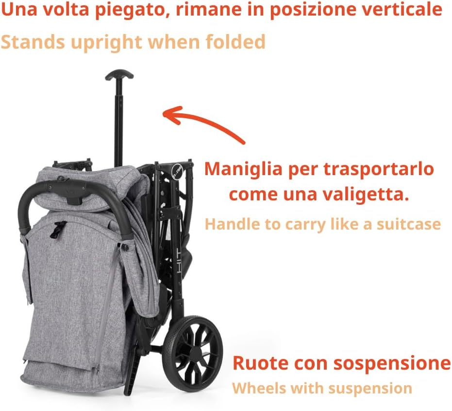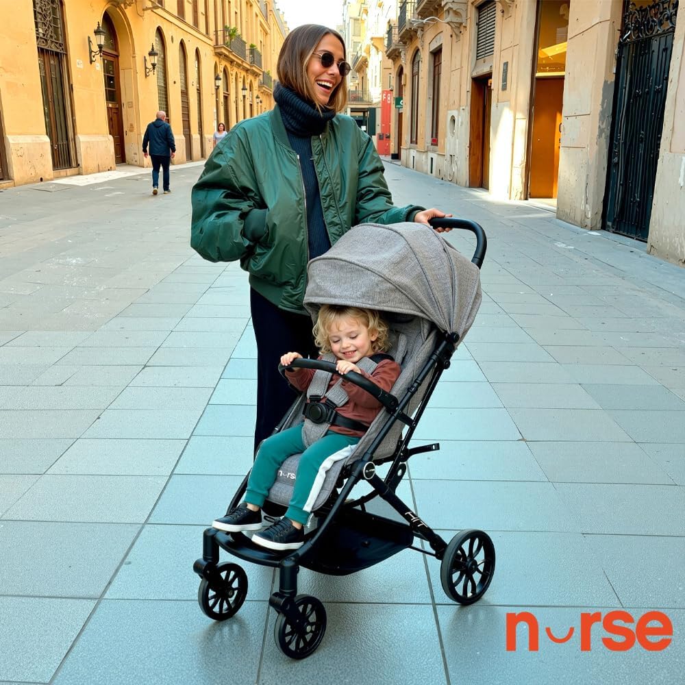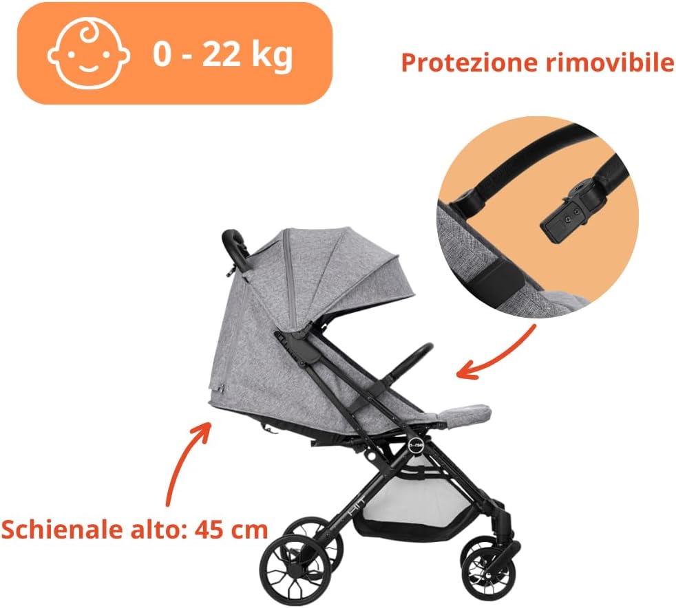Grazie allo schienale reclinabile in 3 posizioni e al poggiapiedi regolabile, il passeggino Hit di Nurse è adatto dalla nascita e accompagna la crescita del bambino fino a 22 kg.
