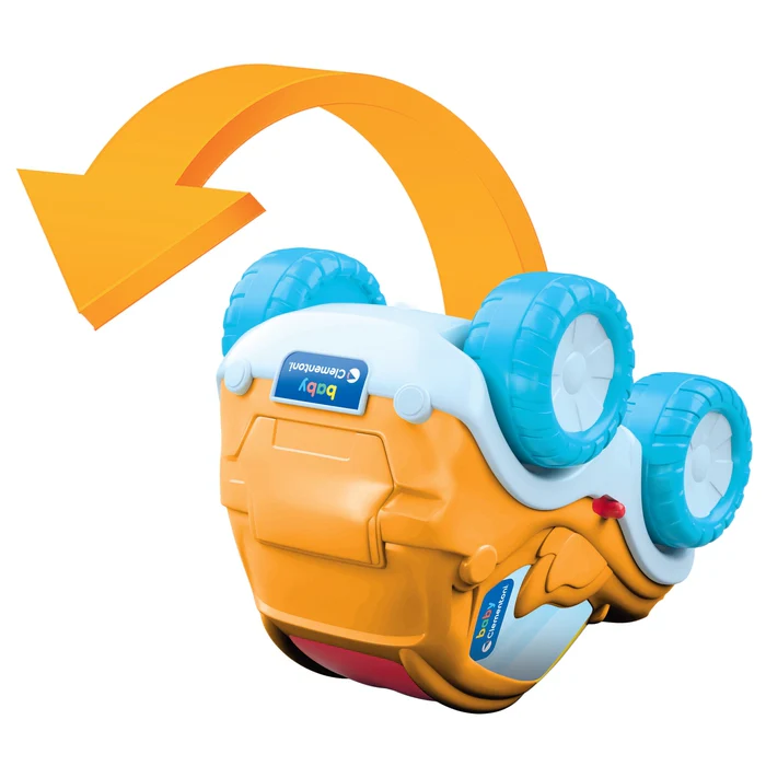 Il radiocomando ha tre pulsanti: avanti, indietro e capriola! Sul cofano della macchina inoltre c'è un grande pulsante interattivo.