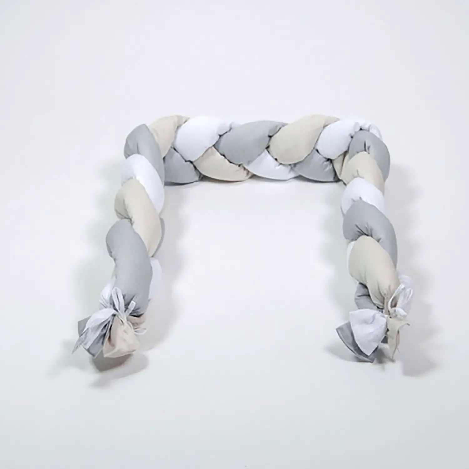 Riduttore a treccia per culla fianco letto next to me in morbido piquet di cotone Bianco grigio tortora